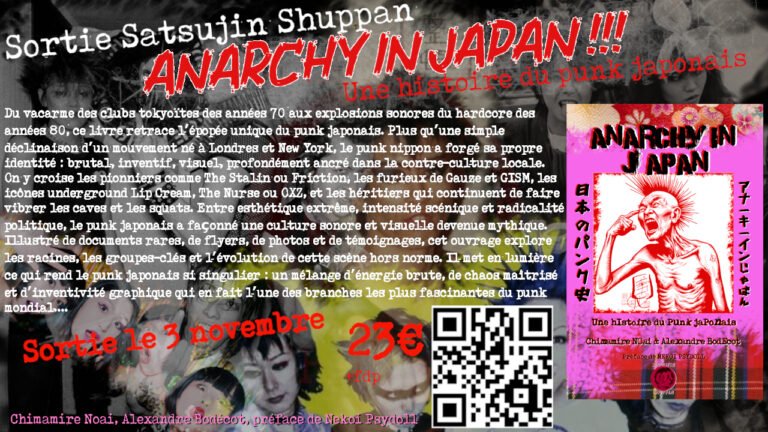 La nouvelle sortie Satsujin Shuppan de novembre va faire du bruit. Anarchy in Japan, une histoire du punk japonais, de Chimamire Noai, Alexandre Bodécot et préfacé par Nekoi Psydoll s’annonce comme une somme historique sur le mouvement de 1977 né…
